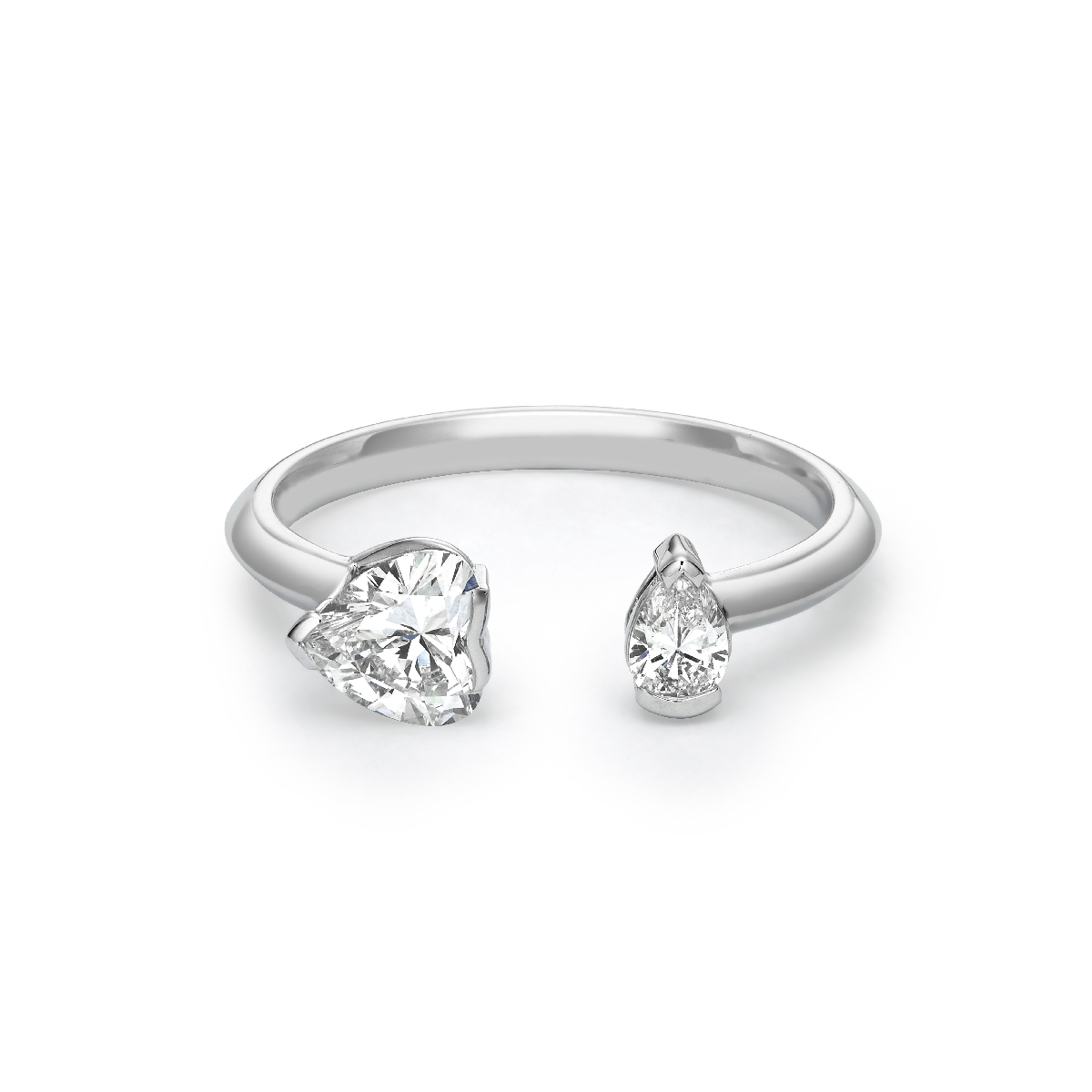 Crafted in luminous 18K white gold, this romantic two-stone ring pairs a 0.67ct heart lab-grown diamond with a delicate 0.27ct pear lab-grown diamond. Exuding pure F-color brilliance, this elegant design sparkles with a refined 0.94 total carats.